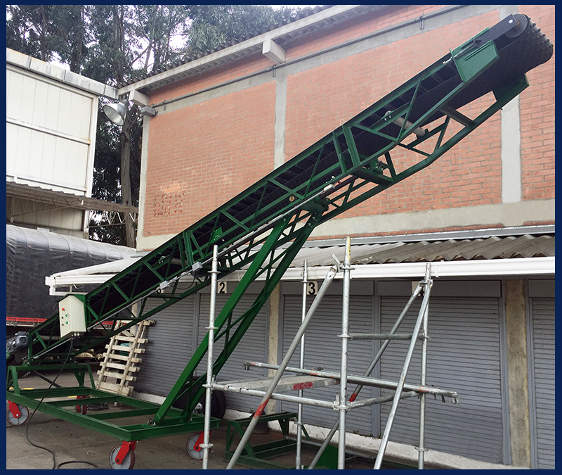 Estibadores de banda para cargue y descargue de camiones con bultos, cajas, canastas, etc.
